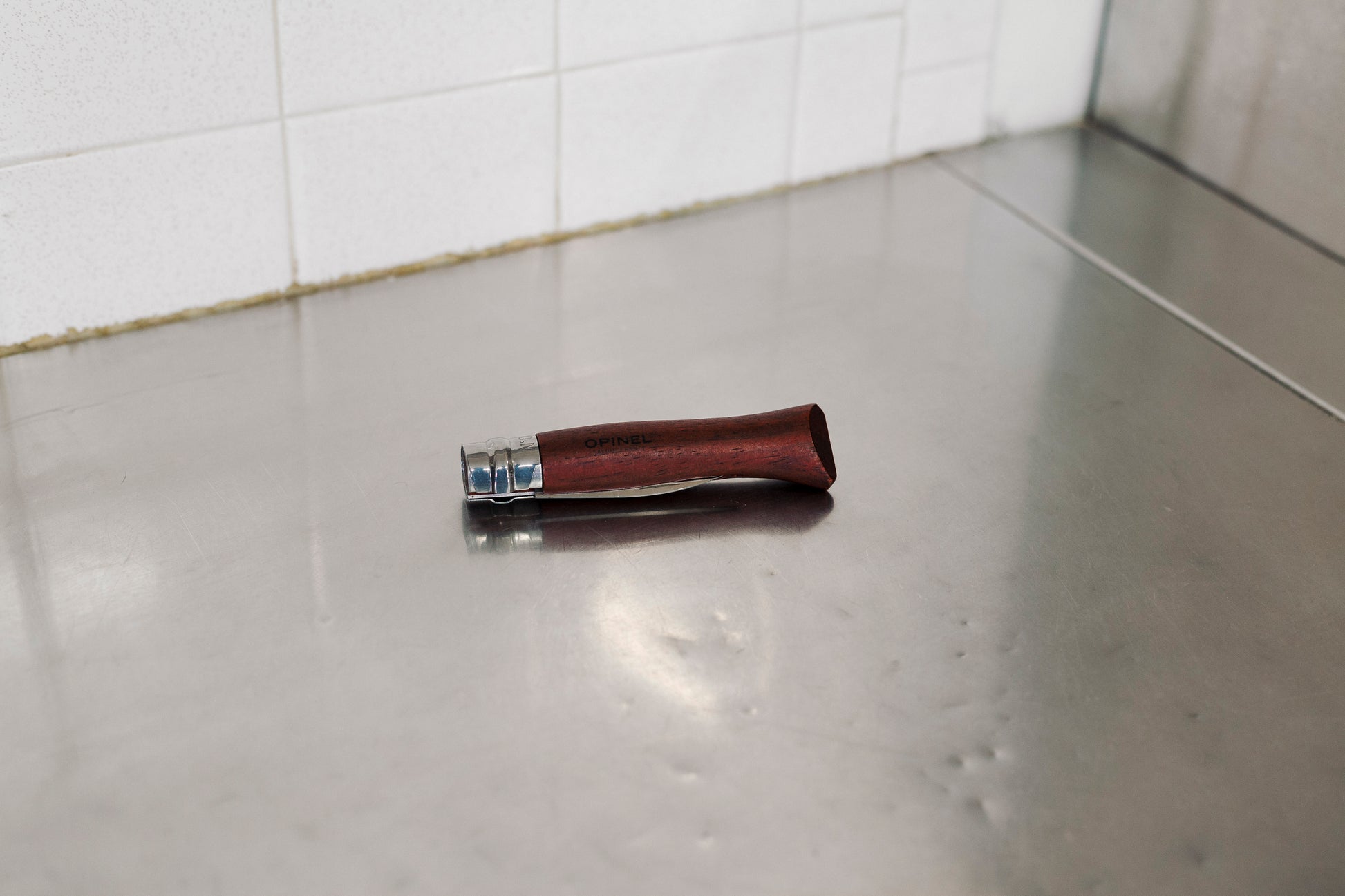 Couteau pliant pour ouvrir les huîtres. Lame biseauté pointue.
